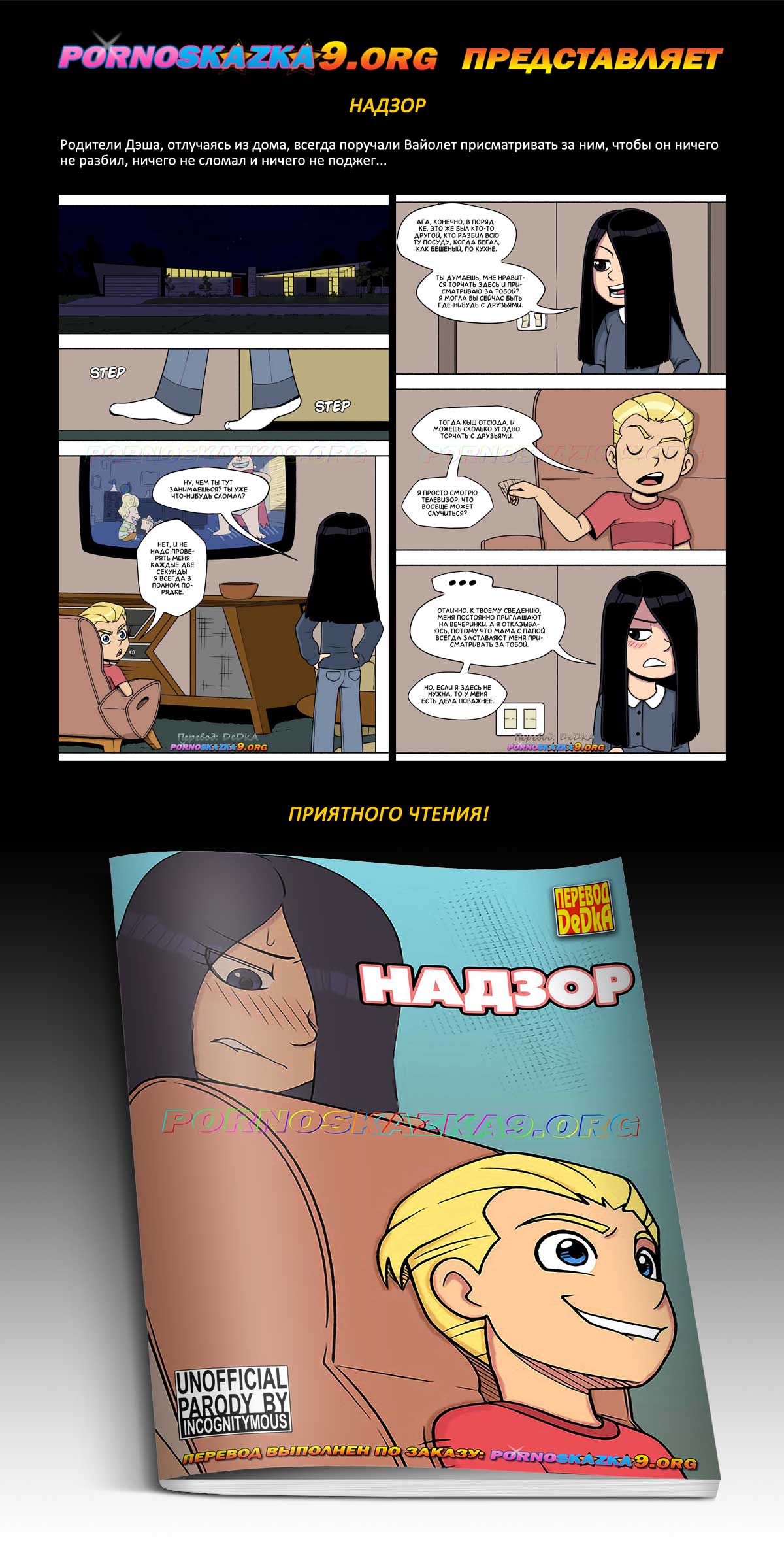 Порно комикс «Надзор.» Родители Дэша, отлучаясь из дома, всегда поручали Вайолет присматривать за ним, чтобы он ничего не разбил, ничего не сломал и ничего не поджег…